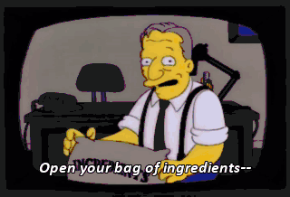 Open your bag of ingredients-- Check for millipedes. Hmm. Hmm, hmm, hmm.