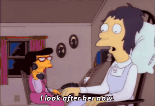 I look after her now. No, Bart, put it down. Put it down, Bart. Bart, put it down. Oh! No all-you-can-eat seafood. I wore my extra-loose pants for nothing. Nothing! Maybe Laura could watch us.