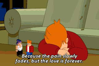Because the pain slowly fades, but the love is forever. Yow! But what if I forget the sweet sound of her voice, or the moist touch of her eyeball on my lips? Are you still hung up on what's-her-name? Move on already!