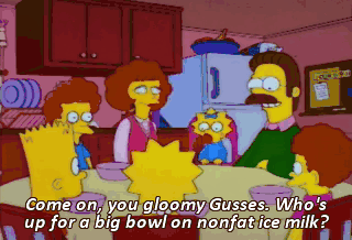Come on, you gloomy Gusses. Who's up for a big bowl on nonfat ice milk? I want wintergreen. Unflavored for me.