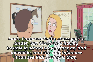 Look, I appreciate the stress you're under, but Marty was having trouble in school way before my dad moved in, and the only influence I can see Rick having is that,