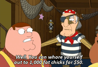 Well, You can whore yourself out to 1,000 fat chicks for $50. No, no. We covered that.