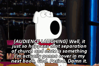 (AUDIENCE LAUGHING) Well, it just so happens that separation of church and state is something I'm actually gonna cover in my next book, God. Period. Damn it.