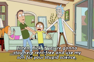 Listen, Rick, if you're gonna stay here rent-free and use my son for your stupid science,
