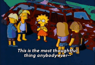 This is the most thoughtful thing anybody ever-- Sweet merciful crap! My car!