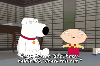 "Hey, type in 'dog, baby, heinie lick.' Check this out."