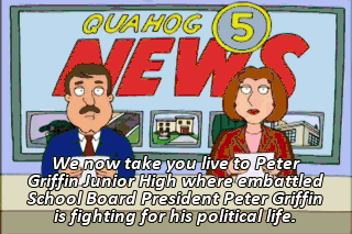 We now take you live to Peter Griffin Junior High where embattled School Board President Peter Griffin is fighting for his political life.