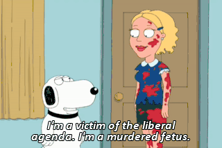 I'm a victim of the liberal agenda. I'm a murdered fetus.