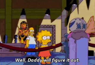 Well, Daddy will figure it out. Oh! We can't touch it, Dad. It's behind a velvet rope. A velvet rope. Lisa, you can't go this far and then not go further.