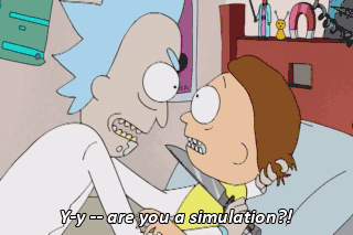 Y-y -- are you a simulation?! Huh?! Are you a simulation?!