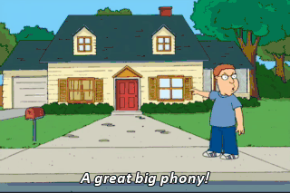 A great big phony! That's right! A phony lives here! A big fat phony!