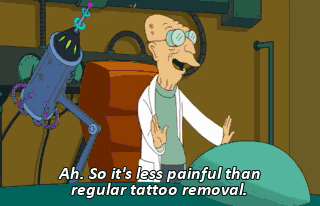 Ah. So it's less painful than regular tattoo removal. Nobody said that. (SCREAMS)