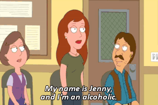My name is Jenny, and I'm an alcoholic. Jeez, anybody here in any other line of work? Ha! ALL: Hi, Jenny.