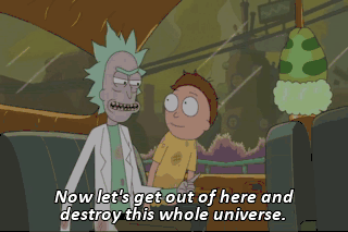 Now let's get out of here and destroy this whole universe. Excuse me?