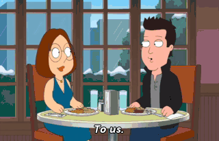 To us. Meg, if you were any more beautiful, that'd be neat. (GLASSES CLINK) So, what should we do next... (THUDS) (SCREAMS) Oh, my God! Toby, what happened?