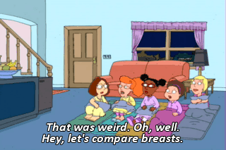 That was weird. Oh, well. Hey, let's compare breasts.