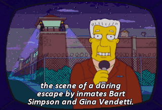 the scene of a daring escape by inmates Bart Simpson and Gina Vendetti. (ALL GASP) To understand the mind-set of the escapees, we've brought in an expert, former under-aged offender, Snake.