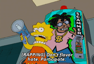 (RAPPING) Don't flavor hate. Participate. Machine makes a good point.