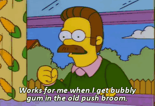 - Works for me when I get bubbly gum in the old push broom. - That sounds okay.
