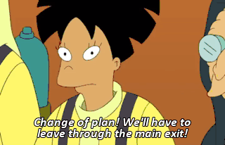 Change of plan! We'll have to leave through the main exit! Everybody say "fresh shrimp!"