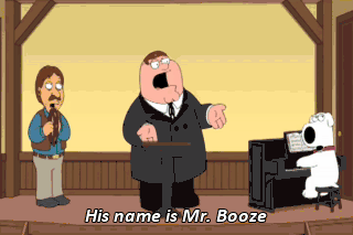 His name is Mr. Booze Mr. Booze Mr. B-double-O-Z-E You must refuse You'll make the obituary news