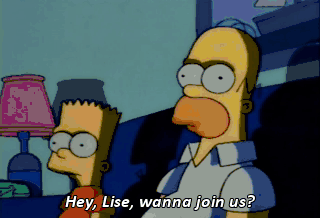 Hey, Lise, wanna join us? Room for one more. We're watchin' the TV.