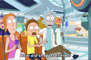 How did she get there?! Oh, my god, Morty, how did she get there? How did she get there? f laughs f Is that something we should be concerned about?