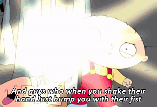 And guys who when you shake their hand Just bump you with their fist I don't think they'd be missed I'm sure they'd not be missed He's got them on the list He's got them on the list