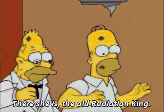 There she is, the old Radiation King. You'd park yourself right there and watch for hours on end. If I, uh, may, Helen, I'd like to respond to that question... with yet another flip remark.