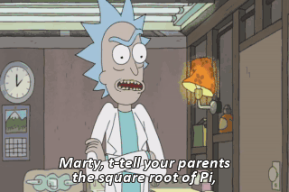 Marty, t-tell your parents the square root of Pi, Oh, come on, Rick. You know I can't. The square root of Pi, Marty -- go. 1.77245385.