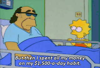 But then I spent all my money on my $1,500-a-day habit. I'd like another Faberge egg, please.