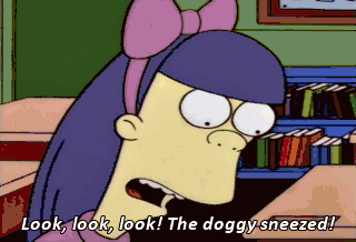 Look, look, look! The doggy sneezed! Ha! It thinks it's people. Oh, smoochie. Here, poochie, poochie, poochie!