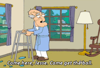 Come here, Jesse. Come get the ball. (BOTH GROANING)