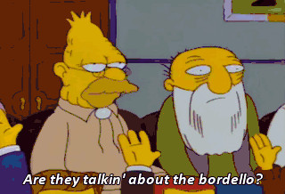 Are they talkin' about the bordello? No, the burlesque house. So just keep your mouth shut. No, there's no justice like angry-mob justice. I'm gonna burn all the historic "memorabilias."