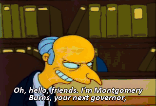 Oh, hello, friends. I'm Montgomery Burns, your next governor,