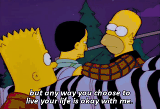 but any way you choose to live your life is okay with me. Huh? He thinks you're gay. He thinks I'm gay? Everybody Dance now