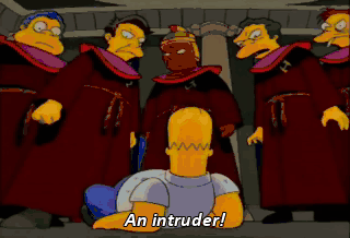 An intruder! He will pay the ultimate price. Yes. The ultimate price. Get outta here!