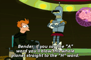 Bender, if you say the "A" word you'll blow this whole planet straight to the "H" word.
