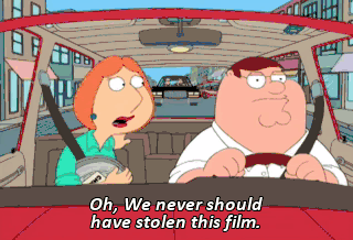 Oh, We never should have stolen this film. Oh, Man, this is even more intense than that time I forgot how to sit down. Don't worry, Lois. I think I know how to lose them.