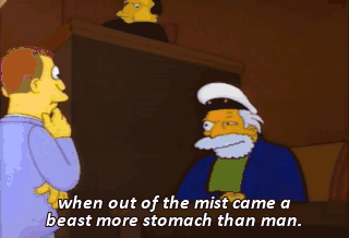 when out of the mist came a beast more stomach than man. Hey! So I says to me bosuns, "Batten down the mizzenmast." Captain McCallister, isn't it a fact... that you're not a real captain? Aye.