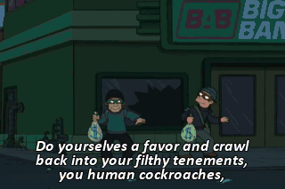 Do yourselves a favor and crawl back into your filthy tenements, you human cockroaches,