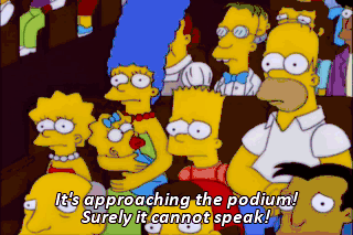 It's approaching the podium! Surely it cannot speak! Snorky... talk... man.