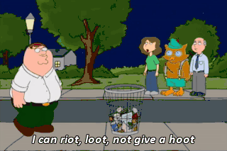 I can riot, loot, not give a hoot and touch your sister's teat Can't touch me Can't touch me What in God's name is he doing? Can't touch me I believe that's the Worm.