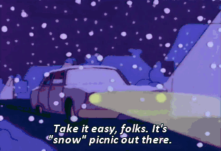 Take it easy, folks. It's "snow" picnic out there. I "snow" what you mean. You're deadweight, Marty.