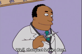 Well, that just leaves Bart. Don't forget Maggie. Oh, I got her when your heads were turned. Got her good! Now, Bart, just look out the window.