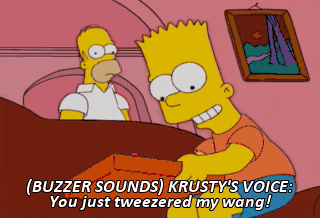 (BUZZER SOUNDS) KRUSTY'S VOICE: You just tweezered my wang!