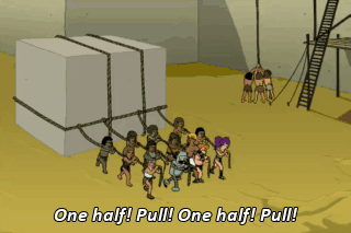 One half! Pull! One half! Pull! Now we're slavin'.