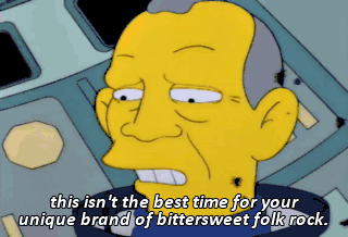 this isn't the best time for your unique brand of bittersweet folk rock.