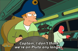Captain, I don't think we're on Pluto any longer. In fact, we may have left space as we know it. Then where are we? You said you knew how to navigate. Stop yelling at me!