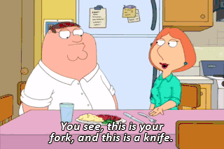 You see, this is your fork, and this is a knife.